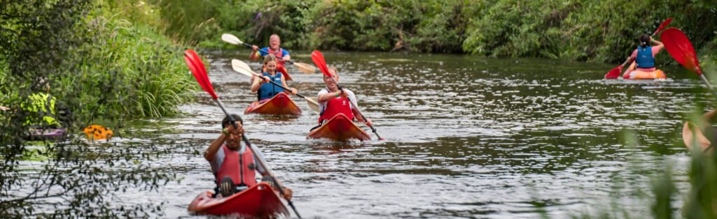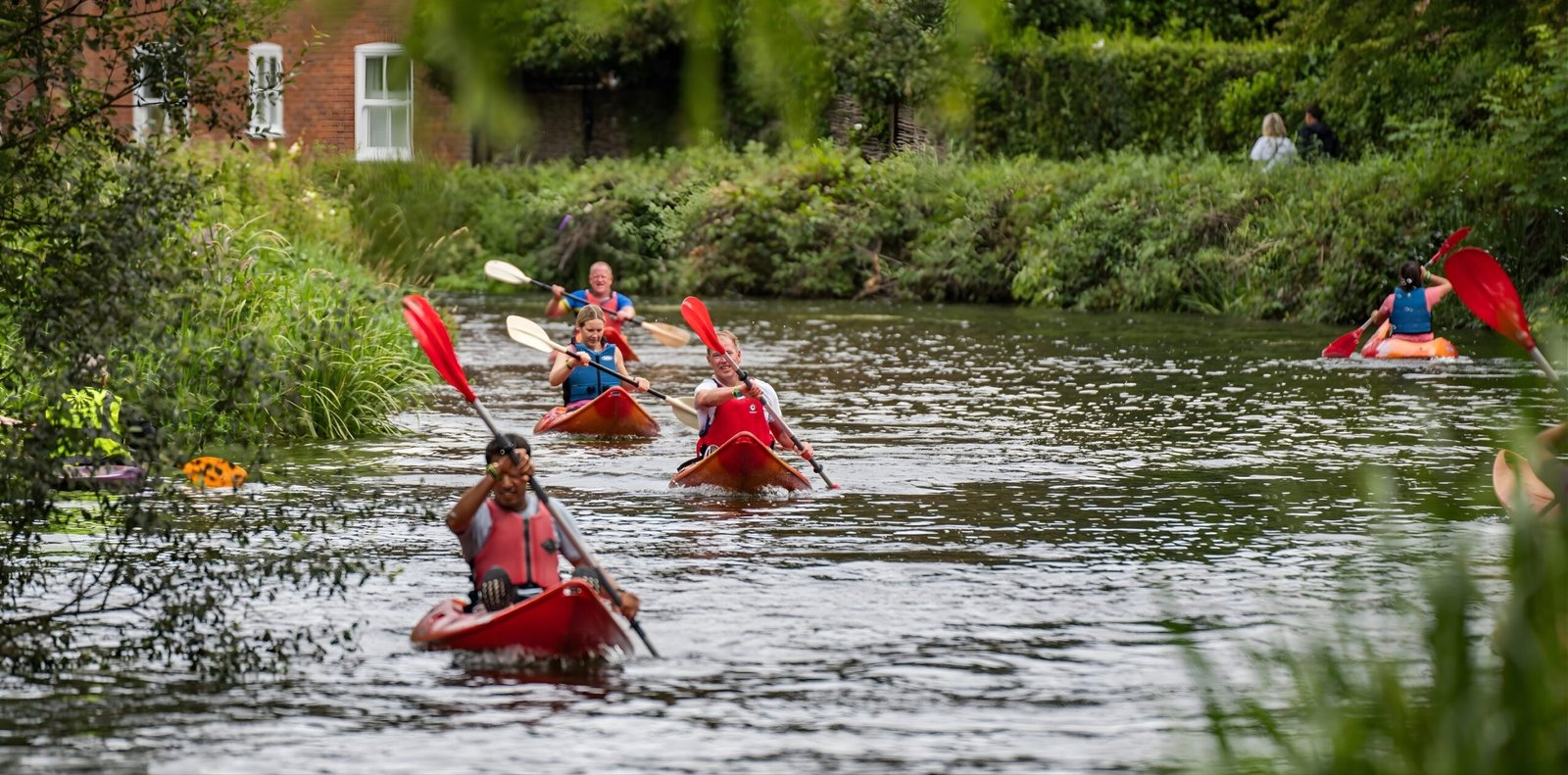Kayak on the River Itchen, kayaks and buoyancy aids supplied by the organisers.