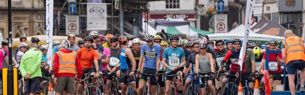On the day (Sunday 12 July 2026), participants register at Palmers Field, Winchester from 7:30am. At 9:00am, everyone doing the cycling leg travels together to the start line at the Guildhall. View the complete event day timetable.